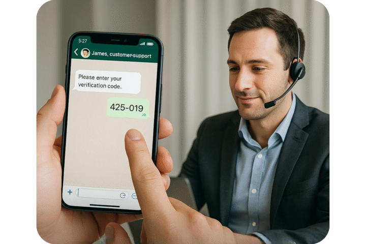 At your chosen time & date, Meta sends you a 6-digit code, reply the code to us on WhatsApp.
